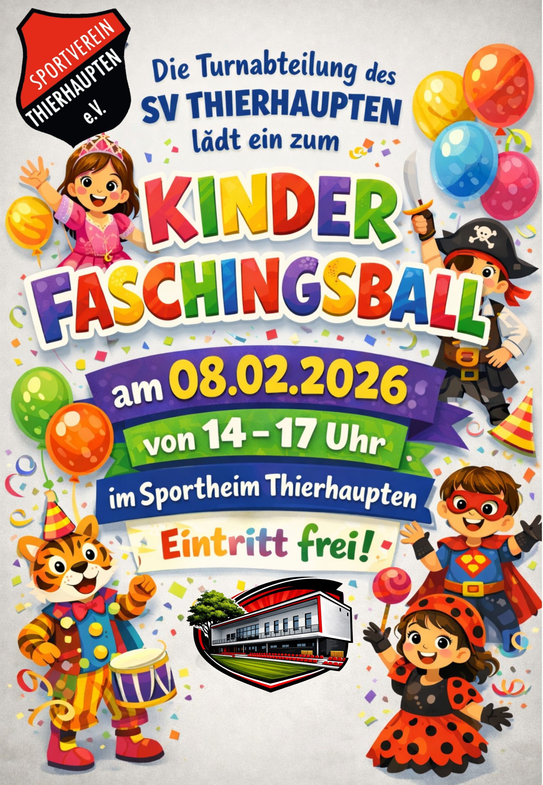 Die Turnabteilung des SV Thierhaupten lädt euch herzlich zum Kinderfaschingsball ein!