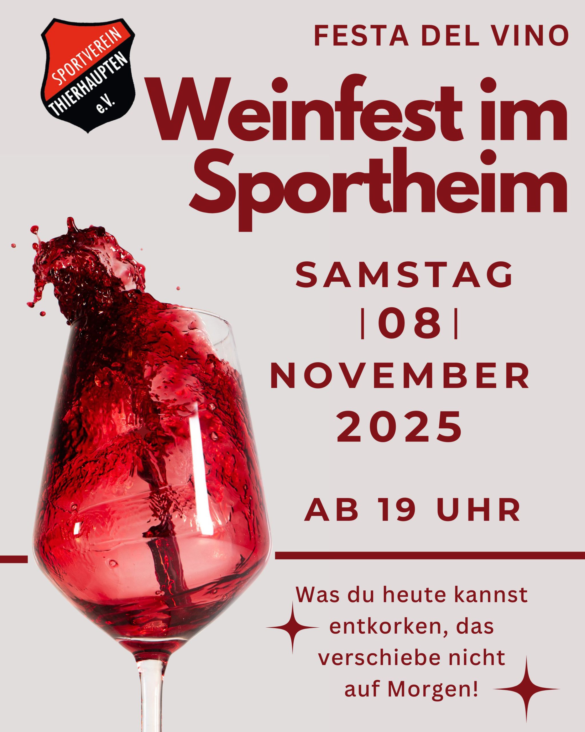 Merkt euch schon mal den 08.11. , denn dann heißt es: WEINFEST IM SPORTHEIM und tanzen, was das Zeug hält! 🕺🎶